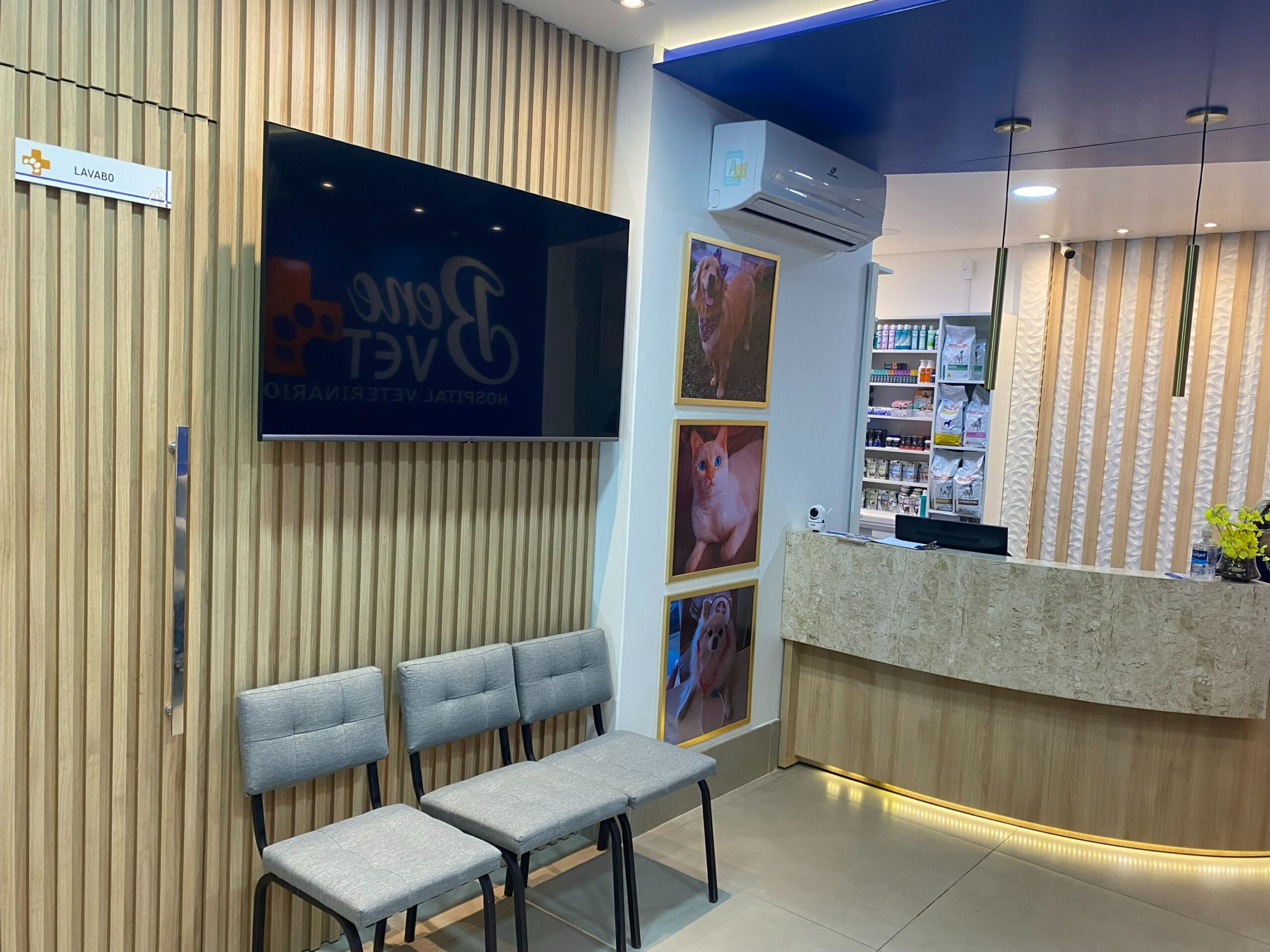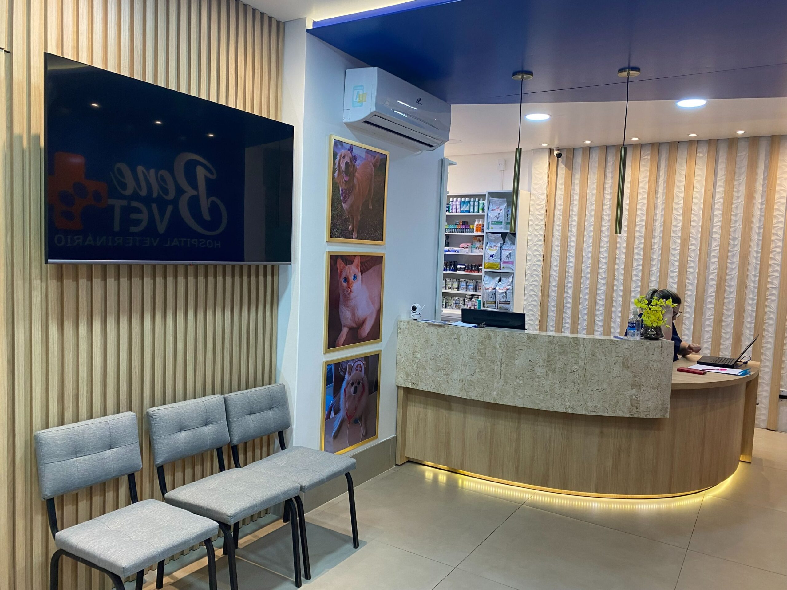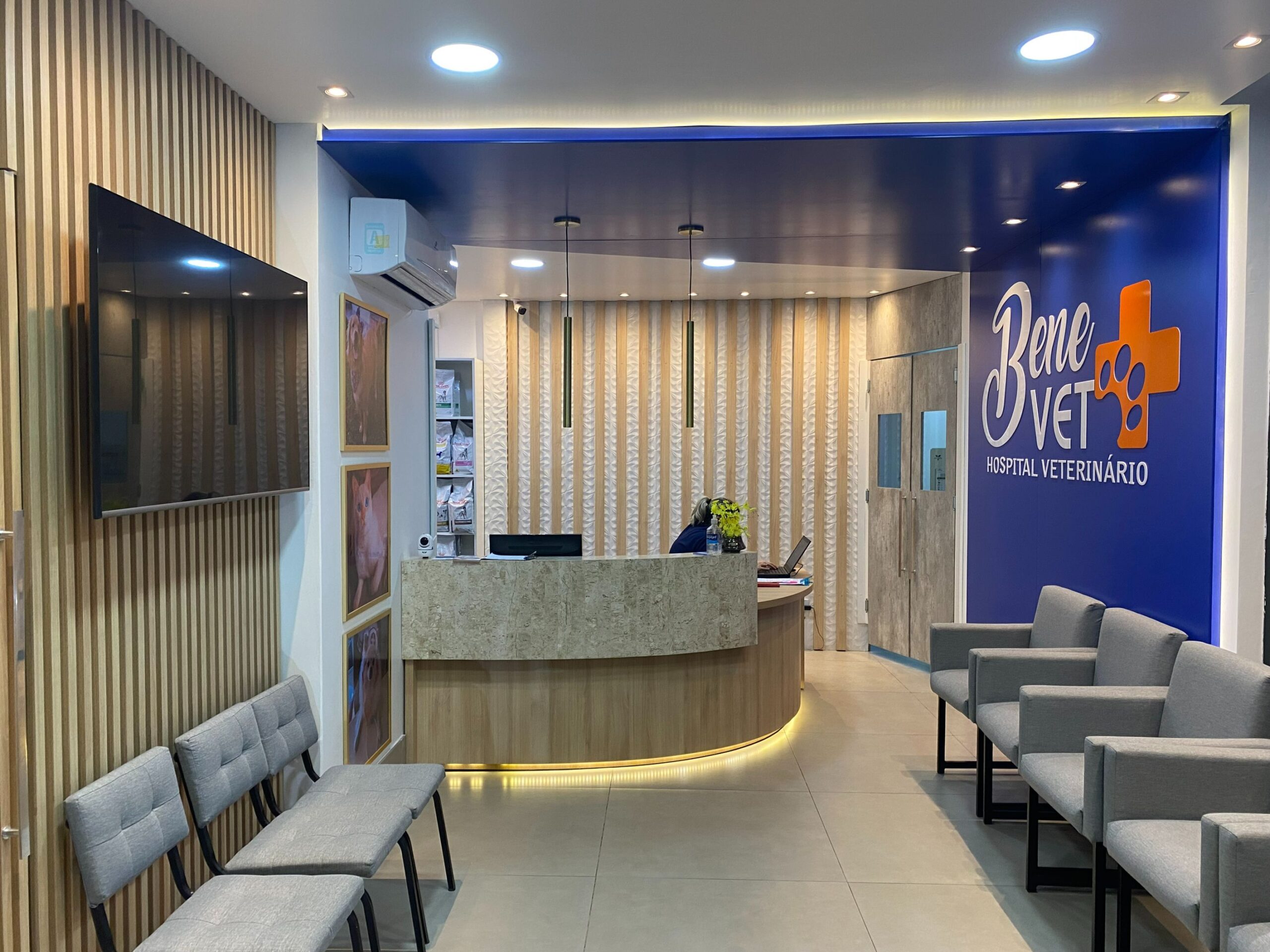 A proprietária desse hospital me procurou com o seguinte pedido: quero deixar a recepção com menos cara de hospital e mais de clínica médica. Pedido executado com sucesso. Adicionamos a madeira para trazer aconchego, materiais nobres que trouxeram mais elegância pro espaço que antes era frio, ampliamos o espaço de trabalho das secretárias e criamos um cantinho do café.